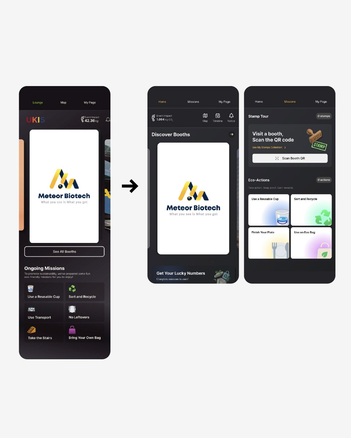 Separated booth discovery and eco-missions for clarity